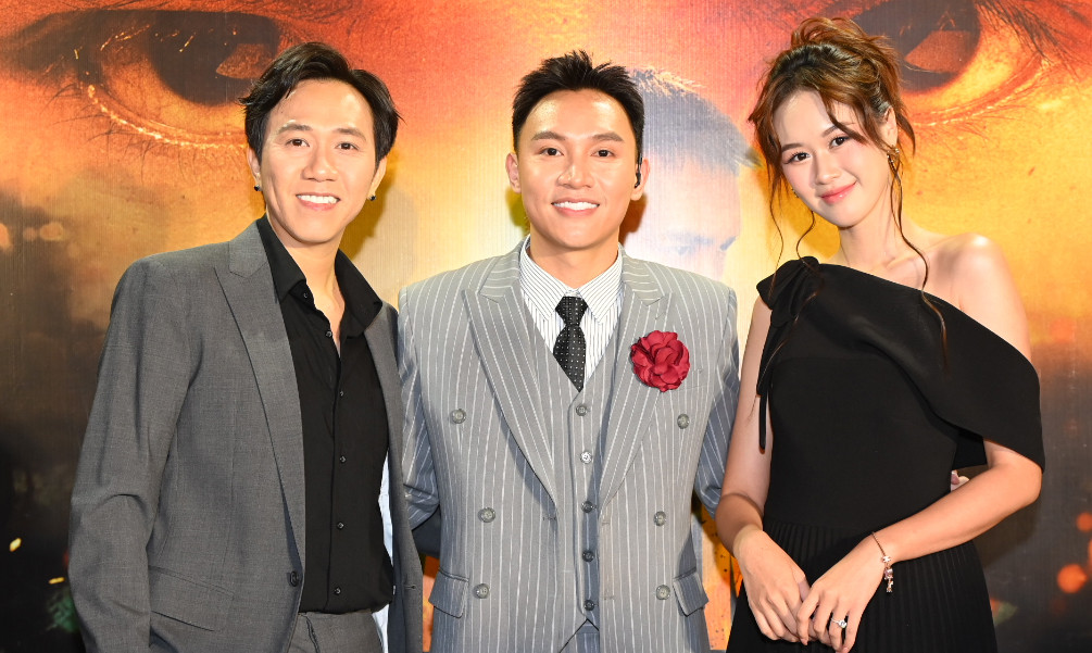 Anh Đức và bạn gái Quỳnh Anh bên Trịnh Đình Quang.