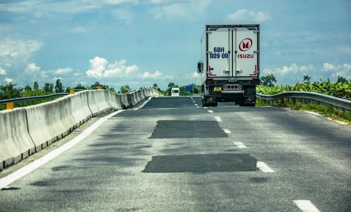 “Đường này thường xuyên xuất hiện các ổ gà và dặm vá khắp nơi. Còn các vị trí cống ngang trên tuyến đường thì mới đây đã lún và mấp mô, chạy ngang rất sốc và nguy hiểm”, anh N.V.D. (ngụ TP Cần Thơ) chia sẻ.