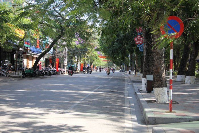 Đường Trần Hưng Đạo có nhiều cơ quan và quán cà phê bên đường cũng không có tình trạng ô tô đỗ dưới lòng đường.