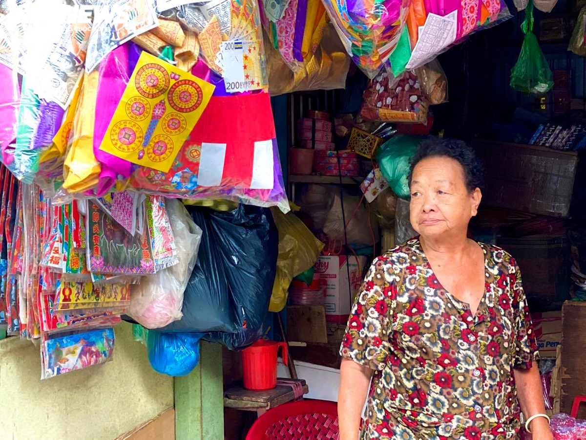 Chú Đạt - bảo vệ chợ Thiếc cho biết, tiểu thương bán hàng mã tại chợ Thiếc có đến 90% là người gốc Hoa. Theo quan sát từ đầu tháng 7 đến nay, lượng khách ghé chợ chỉ bằng khoảng 50% so với các năm trước.