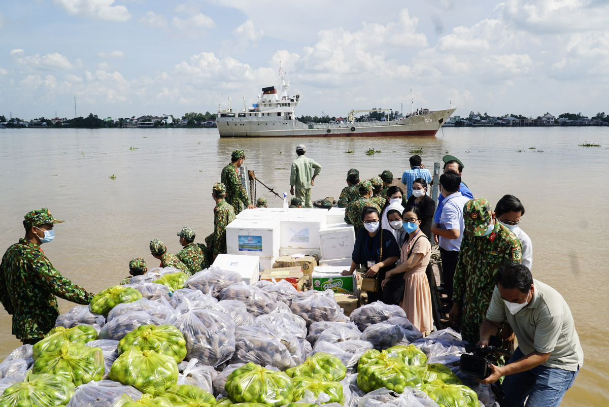 Gần 30 tấn nông sản gồm gạo, khoai lang, chanh, bắp được các chiến sĩ vùng 2 Hải quân vận chuyển bằng đường thuỷ từ Đồng Tháp về cảng Cát Lái (TP.HCM) và được trao tận tay người dân các địa phương đang chịu ảnh hưởng nặng nề nhất của dịch bệnh COVID-19 tại khu vực phía Nam.