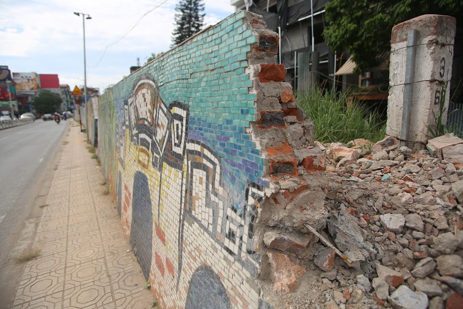 Trong thời gian tới, đơn vị thi công công trình sẽ tiếp tục phá bỏ những bức tranh gốm sứ nằm trong đoạn 600m từ khách sạn Thắng Lợi đến nút giao cầu Nhật Tân để thi công mở rộng đường Âu Cơ.