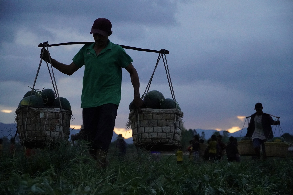 Mỗi năm khi vụ dưa hấu đến, nông dân Tây Nguyên lại tất bật thu hoạch bất chấp thời tiết mưa nắng để kịp thời vụ. Thời điểm này, không chỉ những nông dân tại địa phương vất vả mà lao động từ Quảng Ngãi, Phú Yên cũng đổ về đây, gánh dưa đêm kiếm thêm thu nhập.