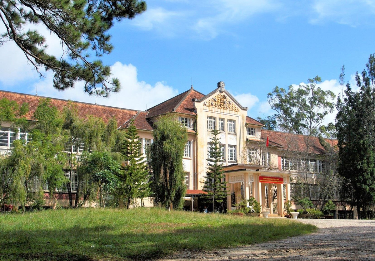 Trải qua nhiều năm, ngôi trường vẫn giữ lại hoàn toàn đường nét kiến trúc Pháp cổ điển, đặc biệt là qua phần tên “ND Du Langbiang” được chạm khắc trên phần tường áp mái.