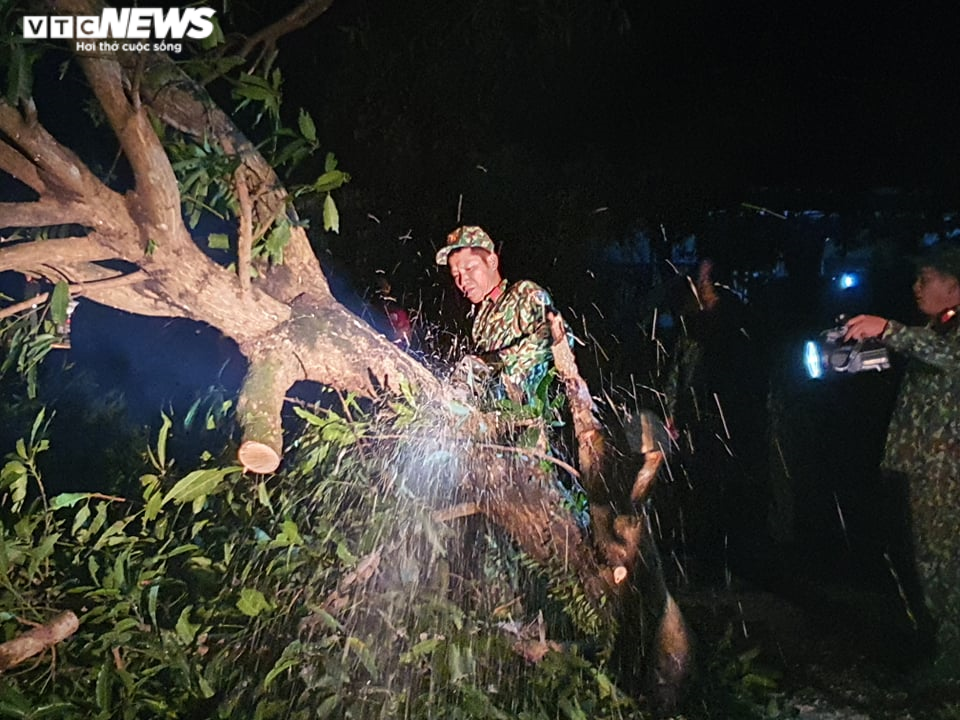 Lực lượng công binh phải xuyên đêm cưa cây mới có thể thông tuyến đường từ TP Tam Kỳ lên trung tâm huyện Bắc Trà My.