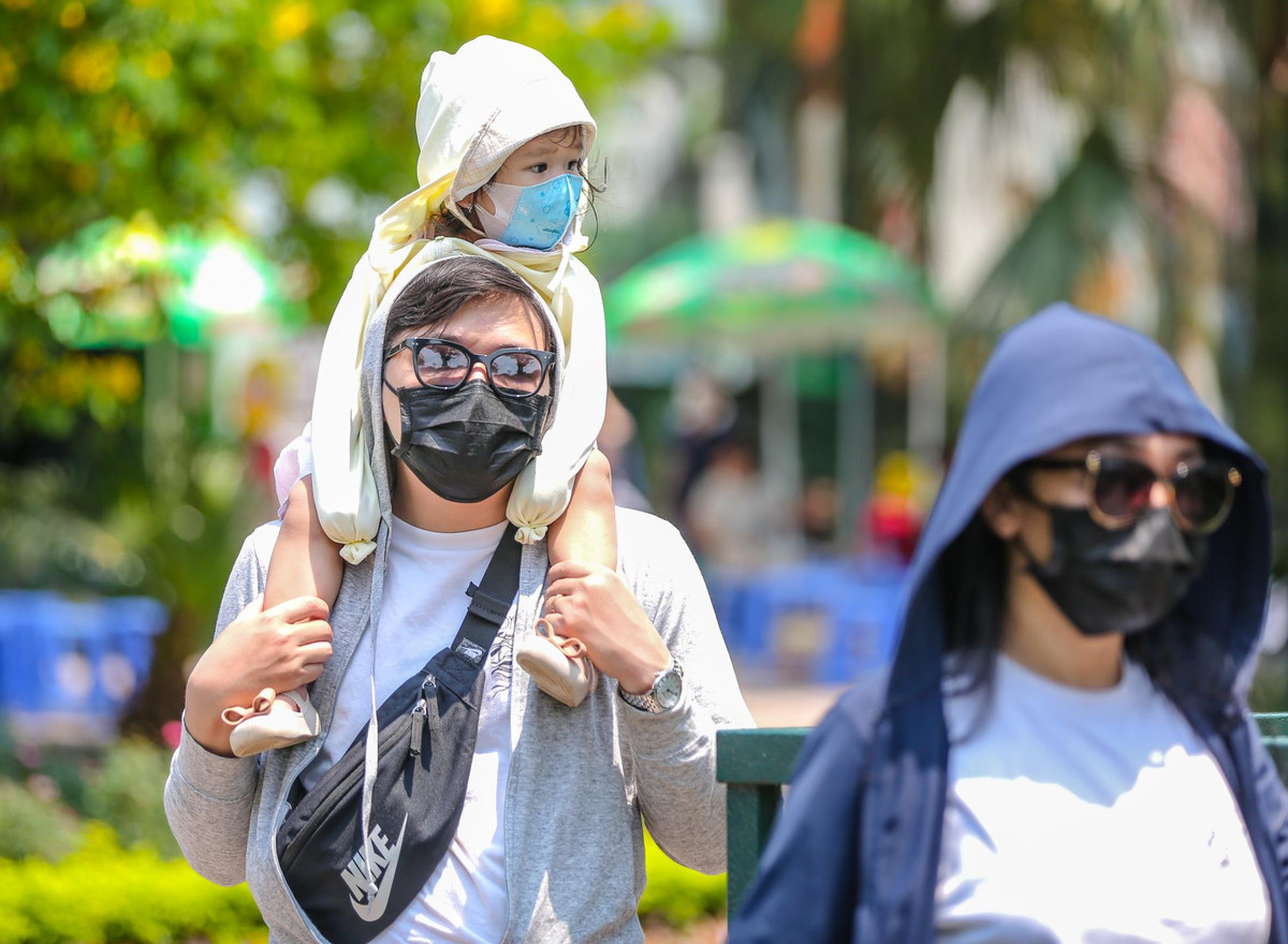 Trưa 9/4, ngày đầu tiên của kỳ nghỉ lễ dịp giỗ Tổ Hùng Vương, nhiều gia đình chọn công viên Thủ Lệ (Hà Nội) là điểm đưa con nhỏ đến chơi. Hôm nay thời tiết thủ đô khá nóng.