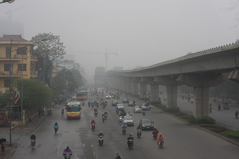 | Những tòa nhà cao tầng ở Hà Nội đều ẩn sau những lớp sương mù trắng xóa. |