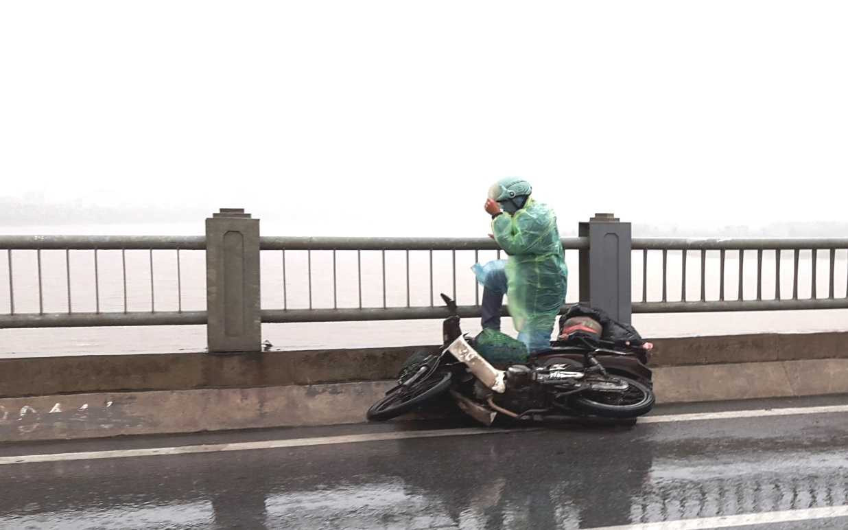 Gió quật ngã người đi đường trên cầu Vĩnh Tuy