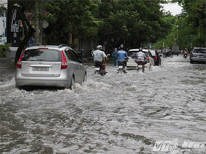 Tuyến đường Lương Khánh Thiện cũng ngập nặng