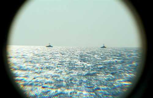 | Hải quân Quân giải phóng nhân dân Trung Quốc cử hai tàu tên lửa số hiệu 752 và 753 tham gia tuần tra liên hợp với hai tàu của Việt Nam. Trong ảnh, hai tàu của Hải quân Quân giải phóng nhân dân Trung Quốc đang di chuyển phía bên kia đường phân giới vịnh Bắc Bộ. |