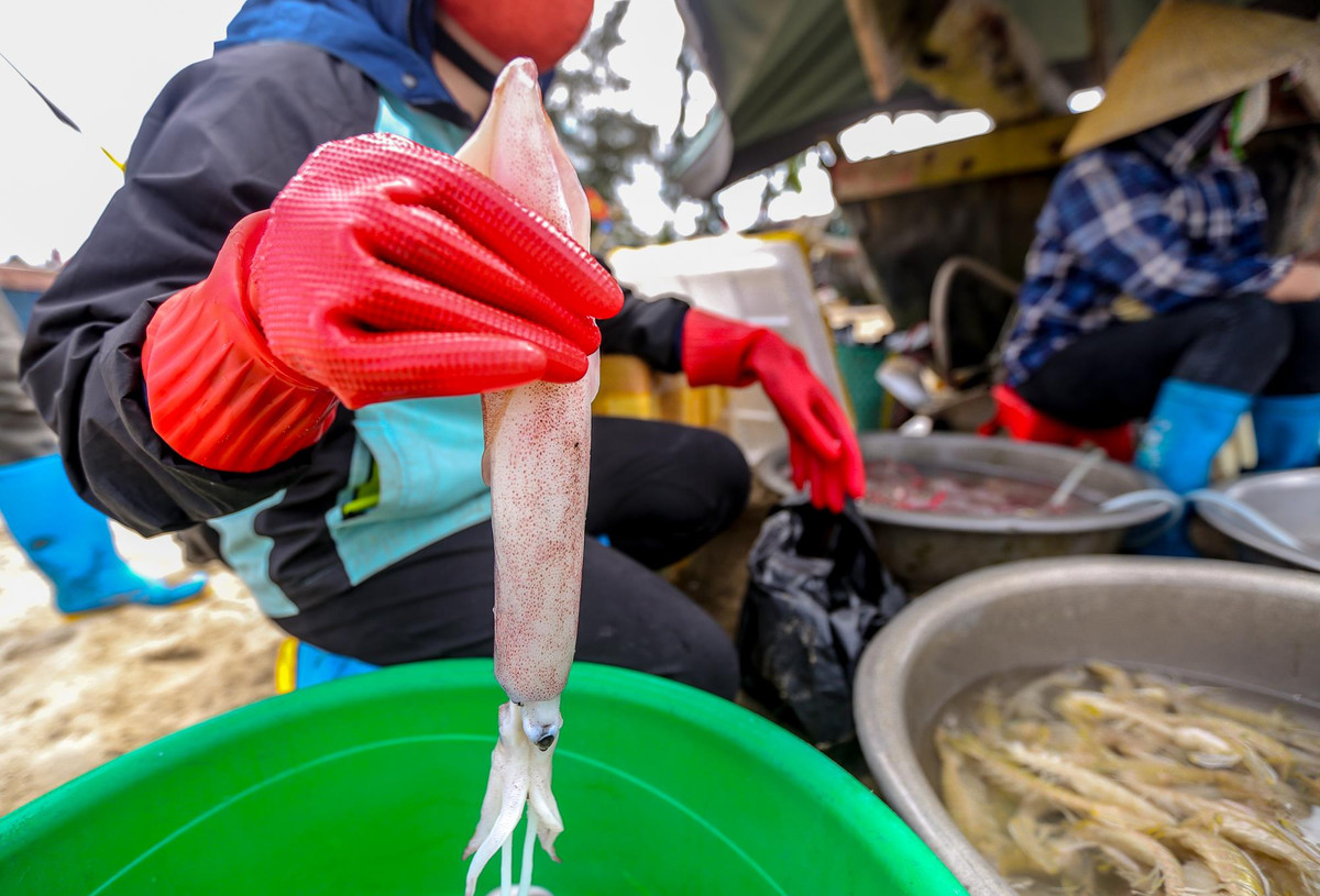 Những thuyền neo đậu dọc bãi D đường Hồ Xuân Hương đều đánh bắt gần bờ và đi ít ngày nên lượng hải sản thu về rất tươi.