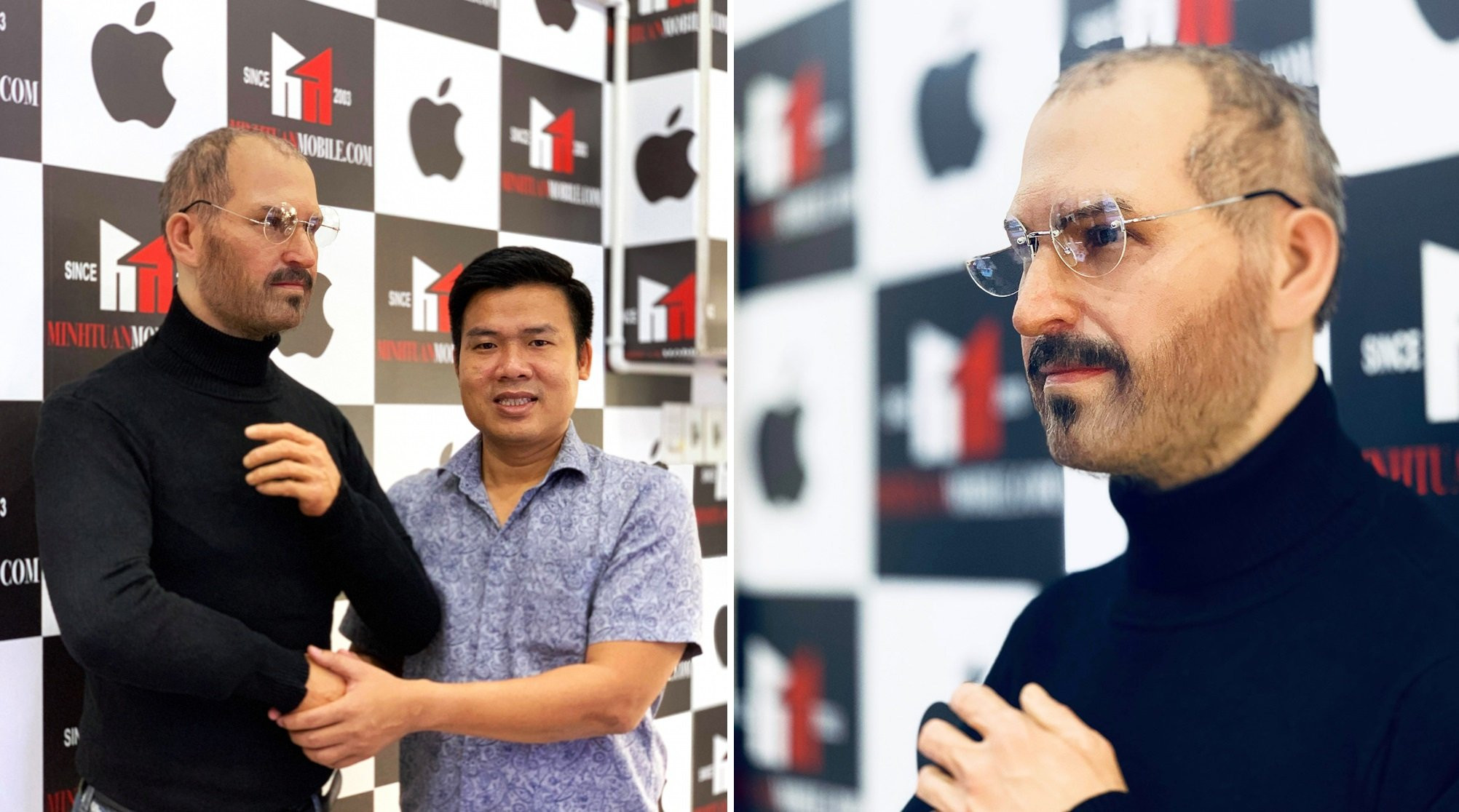 Anh Nguyễn Minh Tuấn, chủ cửa hàng này chia sẻ: "Bản thân tôi đã thần tượng Steve Jobs từ rất lâu. Vì vậy, tôi đã cố gắng để mở cửa hàng bán sản phẩm của vị anh tài này. Sau khi mở được 7 cửa hàng, tôi quyết định đưa bằng được tượng sáp của thần tượng về nhà".