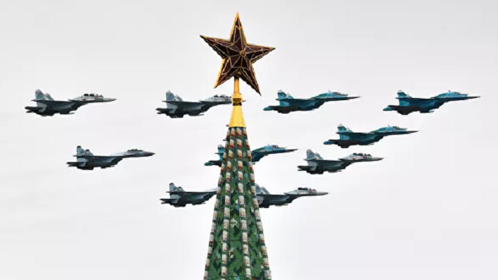 Ngoài màn trình diễn ấn tượng tại Quảng trường Đỏ, các buổi trình diễn trên không cũng được tổ chức tại 47 thành phố của Nga với sự tham gia của 597 máy bay và trực thăng vận hành chiến thuật đường dài, vận tải quân sự và hàng không quân sự. (Ảnh: Ria Novosti)