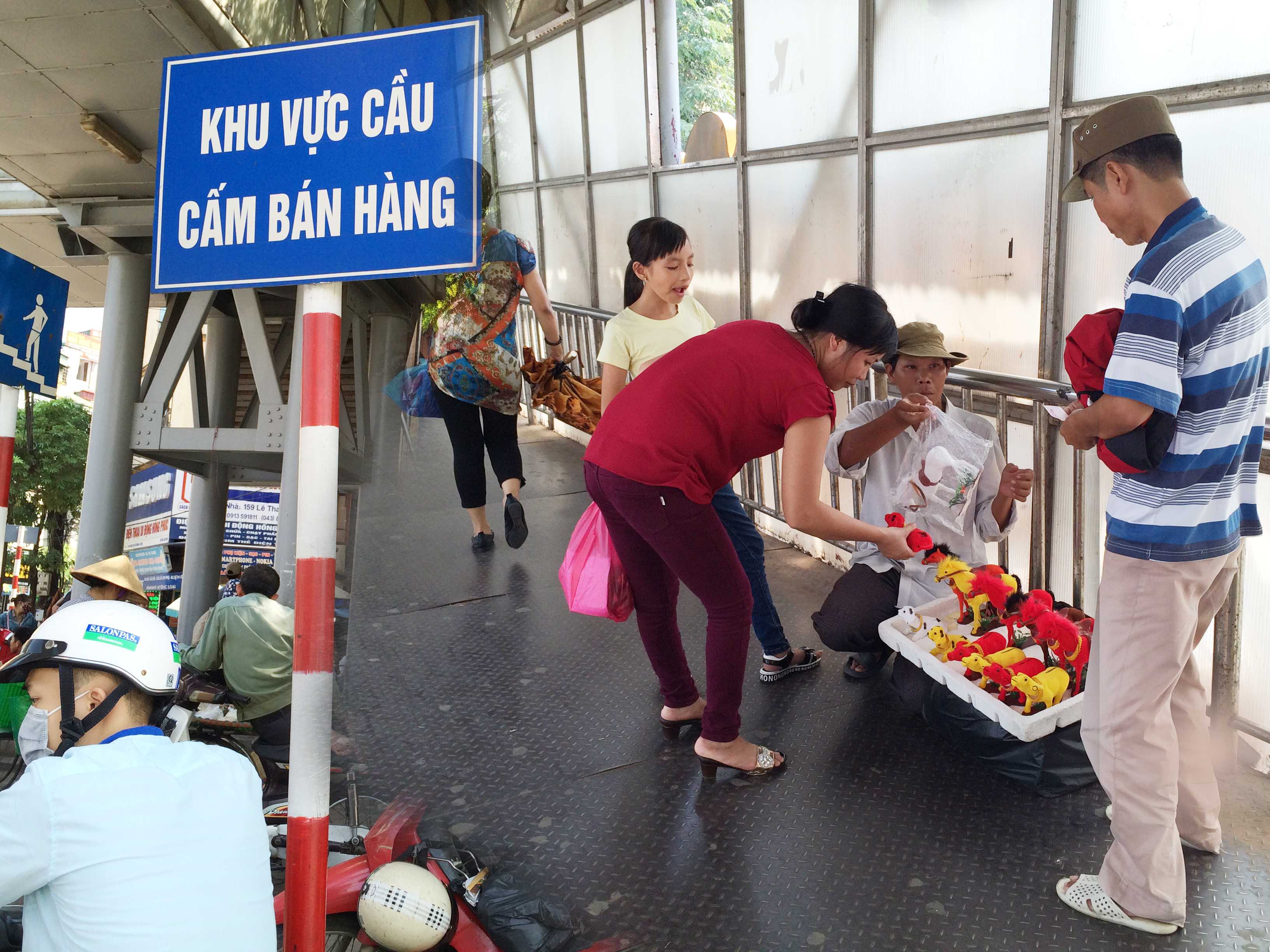 Anh Minh (Đại học Bách Khoa) chia sẻ : “Mình rất ngại đi bộ qua cầu này vì trên cầu nhiều người bán hàng rất lộn nhộn”.