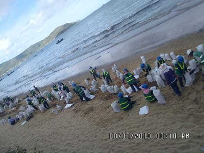 Ngay sau đó, Công ty TNHH Môi trường đô thị Quy Nhơn đã điều động lực lượng hơn 200 công nhân của công ty dùng xẻng, bao cát để hốt dầu vón cục dày đặc tại bãi biển Quy Nhơn, đoạn Eo Nín Thở và bãi tắm biển dọc Công viên Thiếu nhi Quy Nhơn.