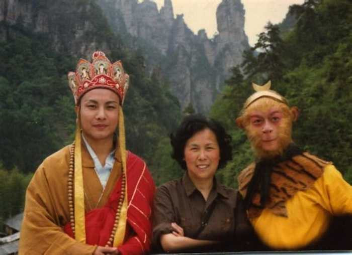 Uông Việt, Lục Tiểu Linh Đồng và đạo diễn khi làm tập phim Ba lần đánh Bạch Cốt Tinh ở Trương Gia Giới năm 1983.