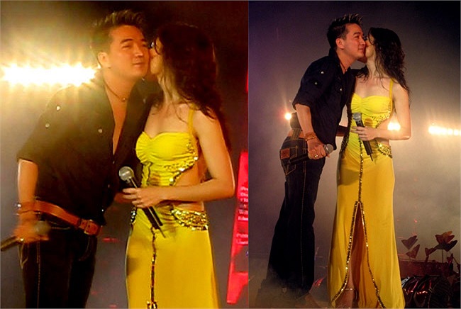Bất cứ sân khấu nào, khi có dịp đứng cạnh nhau, Đàm Vĩnh Hưng luôn tỏ rõ sự yêu chiều của mình với Mỹ Tâm.