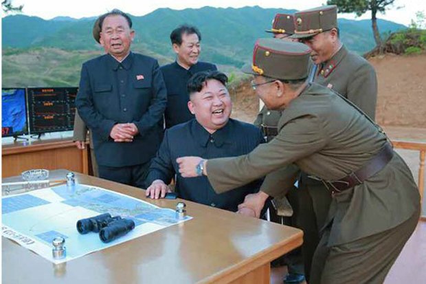 Ông Kim và các tướng lĩnh cười tươi tại điểm thị sát vụ phóng tên lửa.