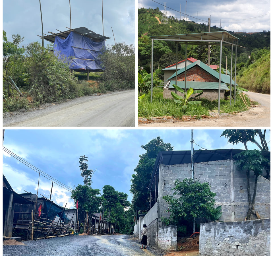 Trong hình là những cột tre quây lưới đen mới được gia đình ông Pa Vũ (SN 1964, trú bản Ván Ri) dựng lên trước nhà nằm sát tuyến đường tỉnh lộ 587.