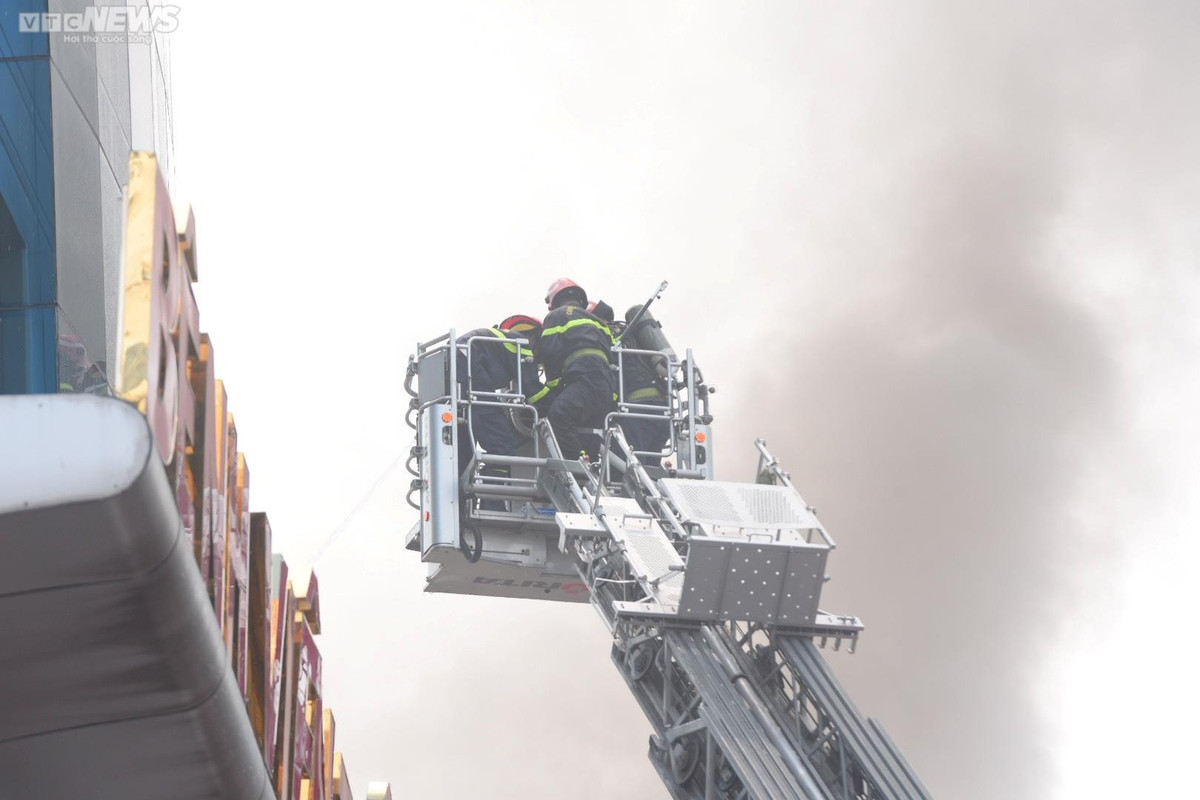 Bên trong hiện trường, lực lượng phòng cháy chữa cháy cật lực dập lửa. Khu vựa bên ngoài, công an và đội an ninh trật tự điều tiết giao thông, nhắc nhở người dân di chuyển tránh khói độc.