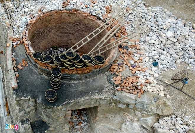 | Lò nung đỏ lửa và khói vẫn tỏa ra phía trên miệng hố. |
