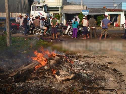 | Đốt những vật dụng bị hư hỏng của nạn nhân để lại hiện trường. Ảnh: Người lao động |