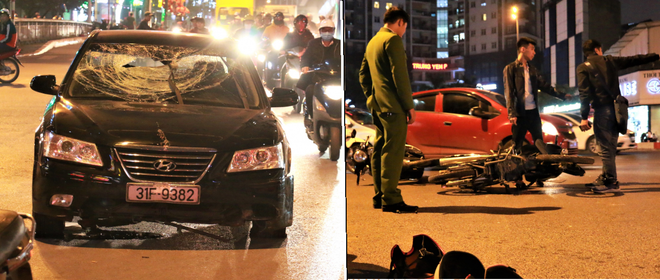 Vụ tai nạn xảy ra vào khoảng 20h30 ngày 25/12, tại khu vực gần ngã tư đèn đỏ Trần Duy Hưng - Nguyễn Ngọc Vũ ( quận Cầu giấy, Hà Nội). (Ảnh: Tùng Lâm)