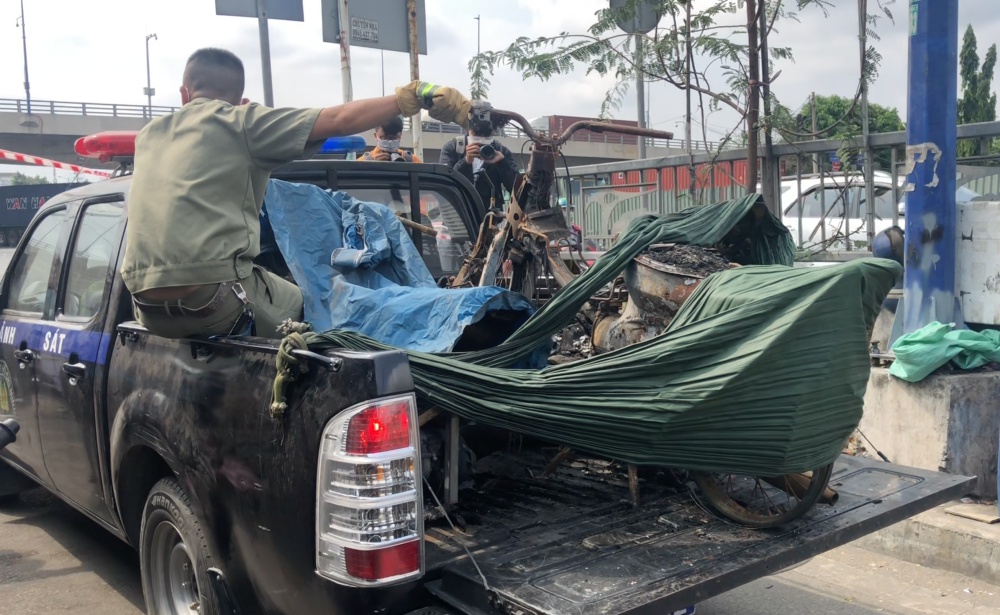 Bà Lê Phan (ngụ phường Cát Lái, TP Thủ Đức) cho biết, ông Tâm bị sốc nặng đã được đưa đi bệnh viện cấp cứu vì cố lao vào đám cháy cứu vợ và con cháu nên bị bỏng toàn thân.