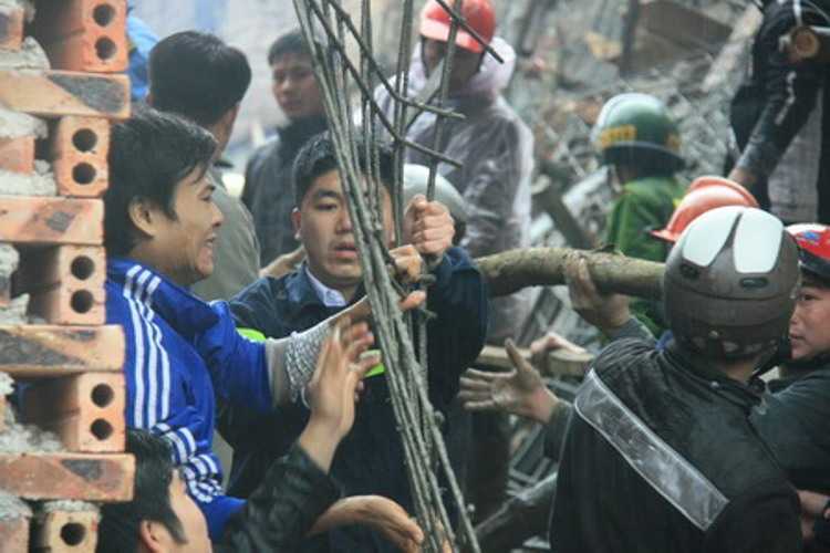 Lối vào hiện trường được phong tỏa để triển khai công tác cứu hộ.