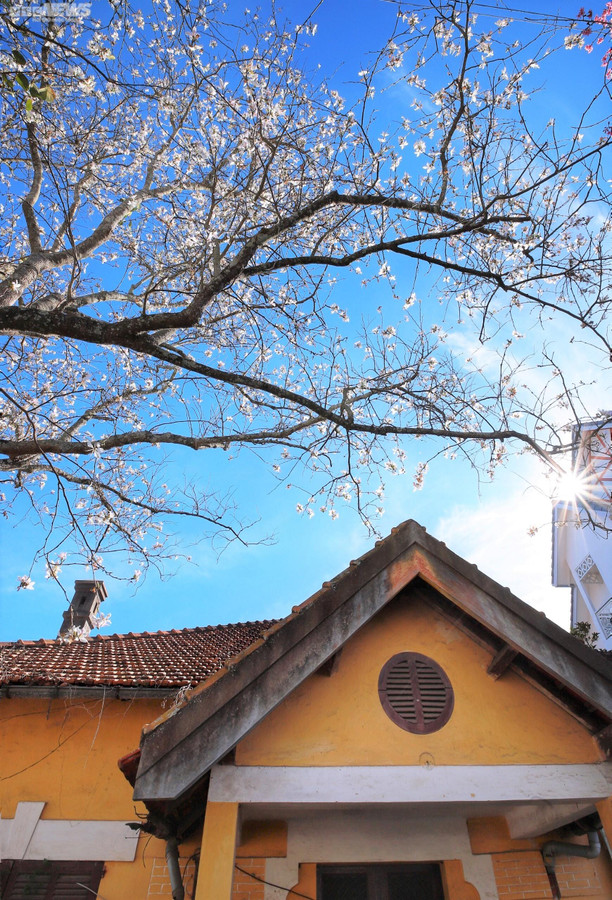 Vốn hợp với khí hậu lạnh của mảnh đất phố núi, hoa ban khi bung nở mang sắc trắng dịu nhẹ, nổi bật trên nền trời xanh.