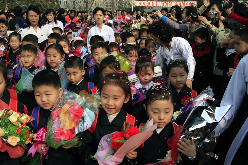 Các học sinh mới trong buổi học đầu tiên của năm học tại một trường tiểu học ở Bình Nhưỡng. (Ảnh: AP)