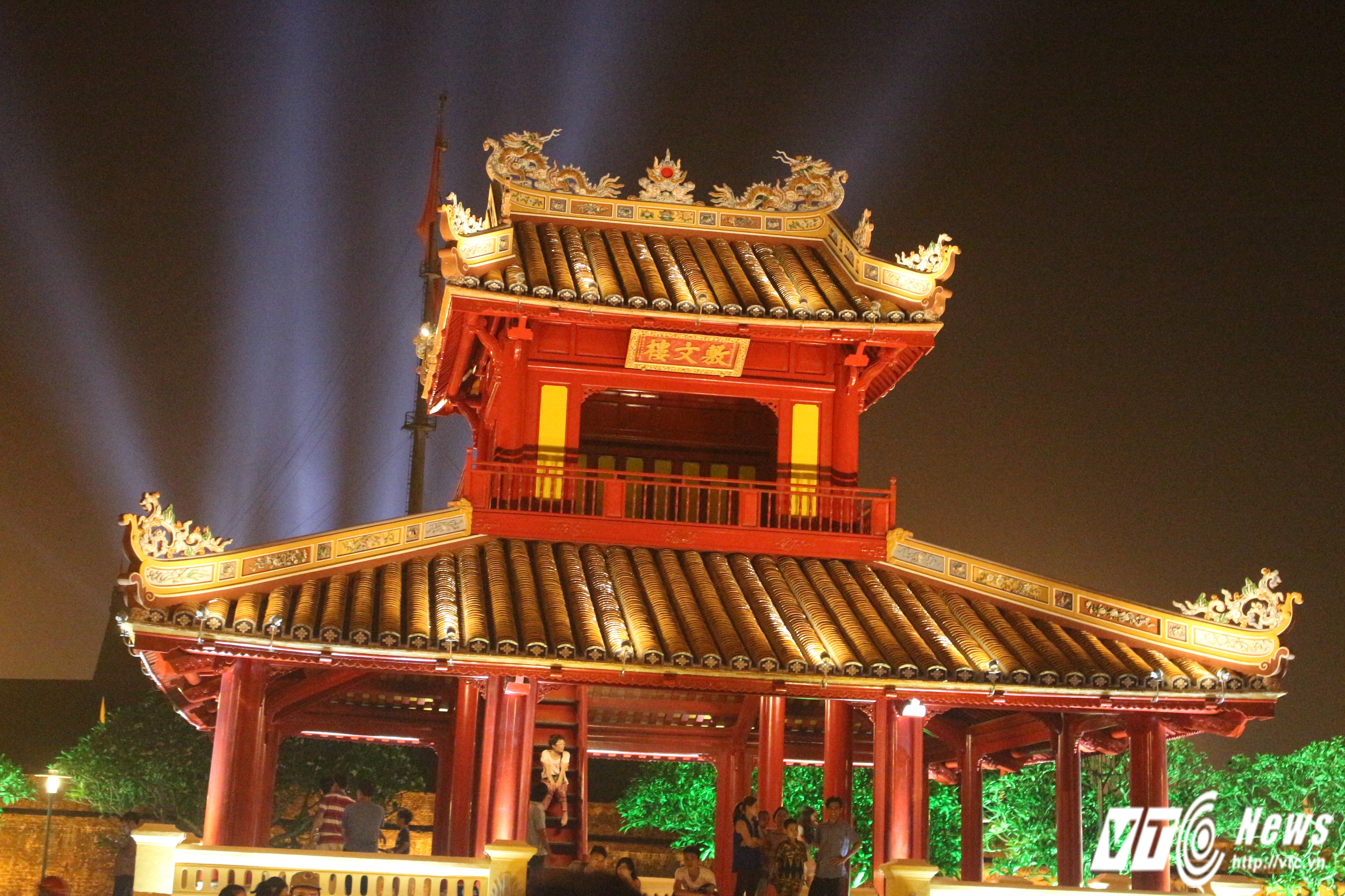 | Phu Văn Lâu sau hơn một năm được trùng tu trở nên đẹp và thơ mộng dưới hệ thống đèn trang trí. |