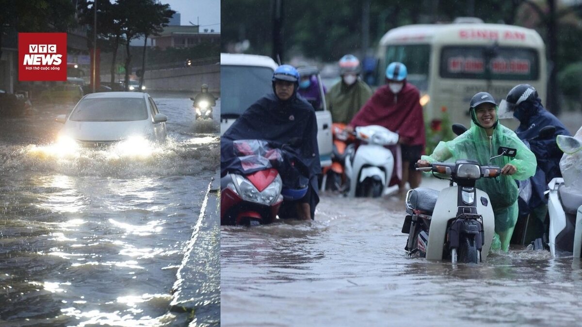 Ảnh hưởng bão số 5, Hà Nội mưa xối xả, đường phố biến thành biển nước