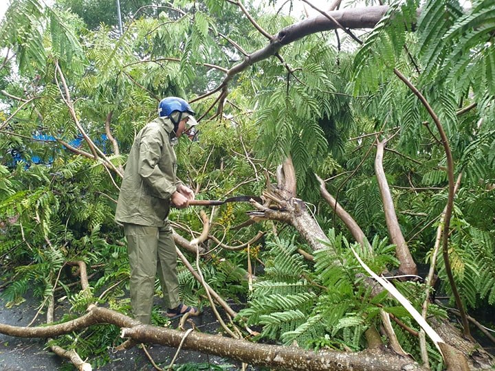 Nhiều cây xanh và cây nông nghiệp của người dân ở Quảng Ngãi bị quật ngã do ảnh hưởng của bão số 5.
