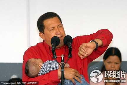 Ngày 3/12/2007, Tổng thống Venezuela Hugo Chavez có vẻ bận rộn khi bế một em bé đi bỏ phiếu ở Caracas
