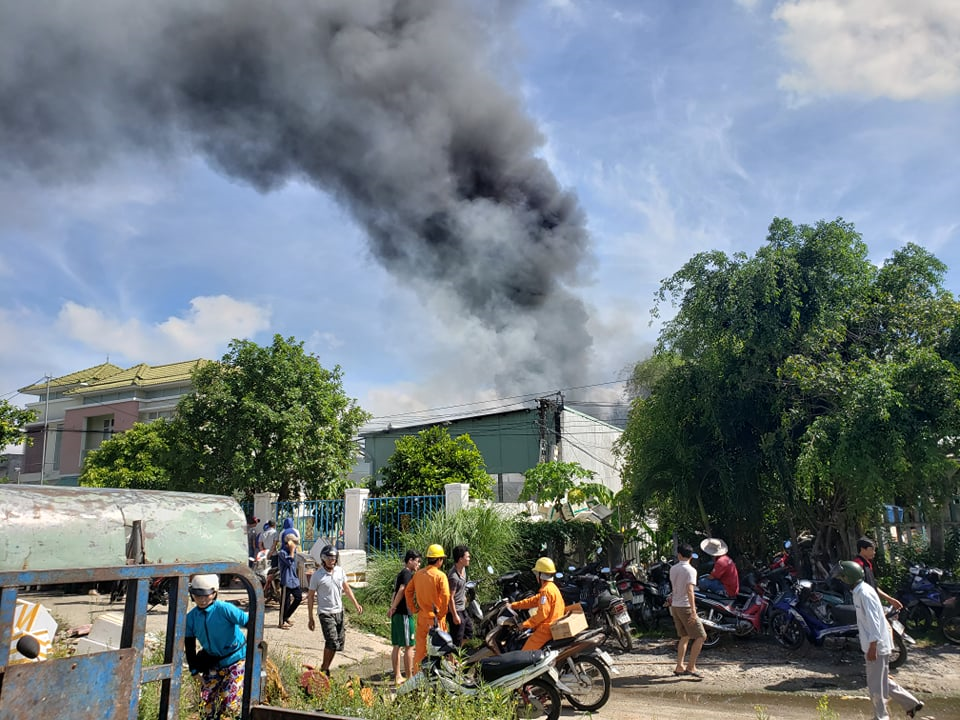 Vụ hỏa hoạn xảy ra khoảng 8h30 ngày 28/9 tại nhà kho chứa hải sản ở xã Tam Anh Bắc, huyện Núi Thành, tỉnh Quảng Nam.