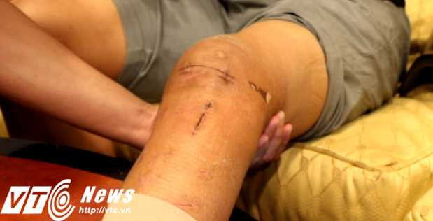 | Vết thương của Anh Khoa sau phẫu thuật (Ảnh: Quang Minh) |