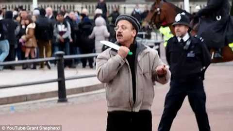 (VTC News) - Vào 12h trưa (theo giờ địa phương) ngày 3/2, một người đàn ông lạ mặt đã gây náo loạn London bằng một con dao lớn kề vào cổ chính mình.