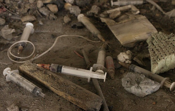 ..xen lẫn đó là nhiều bơm kim tiêm nổi trên mặt.