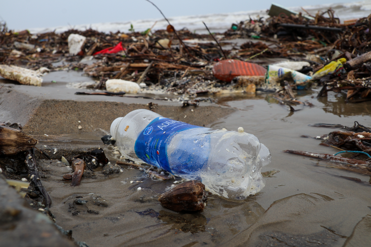 Lượng lớn chai nhựa, chai thủy tinh bị sóng đánh tấp vào bờ. Đây là loại rác thải khó phân hủy, nếu không có biện pháp xử hiệu quả sẽ gây ảnh hưởng về lâu dài.