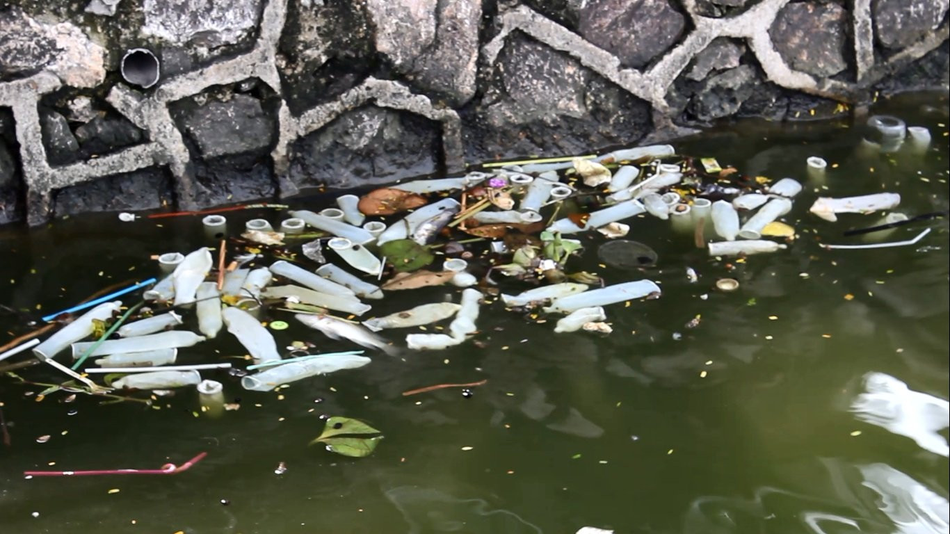 Người dân cho biết có thể ai đó đã đem đổ số bao cao su này ra hồ.
