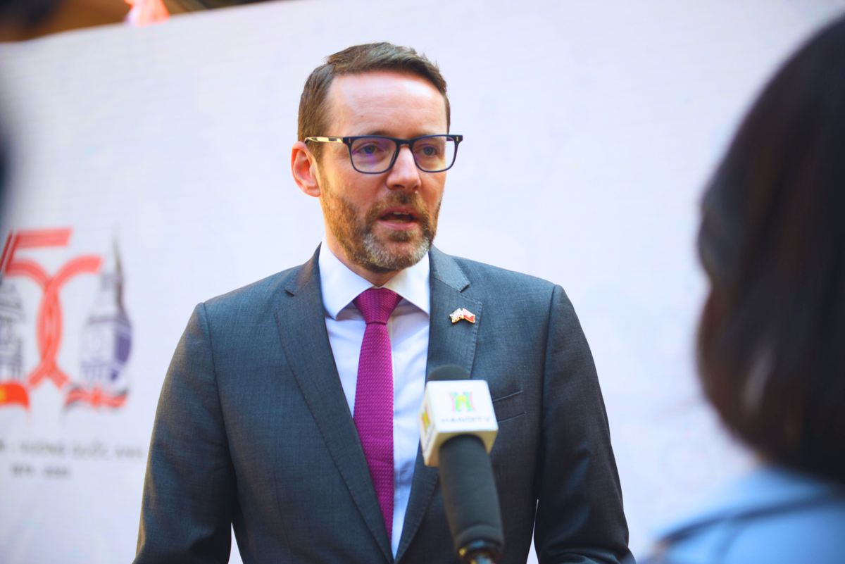 Ông Iain Frew chia sẻ thông tin nói trên tại buổi công bố logo kỷ niệm 50 năm thiết lập quan hệ ngoại giao Vương quốc Anh - Việt Nam, diễn ra ngày 14/12 tại nhà riêng của đại sứ Anh. Đại sứ cho biết ông cảm thấy vinh dự khi đến Việt Nam vào đúng thời điểm Việt Nam và Vương quốc Anh thiết lập 50 năm quan hệ ngoại giao và kỷ niệm 12 năm quan hệ đối tác chiến lược giữa hai nước.