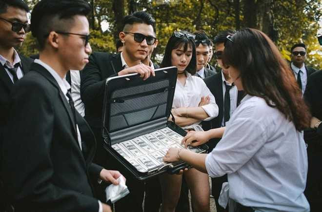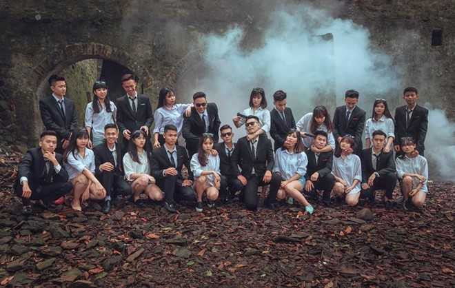 “Cả lớp hóa thân thành những băng nhóm xã hội đen trao đổi hàng hóa. Chúng mình muốn tạo ra điểm khác biệt và có nét gì đó chín chắn hơn”, Phượng Bích - thành viên lớp - nói về ý tưởng ảnh kỷ yếu.