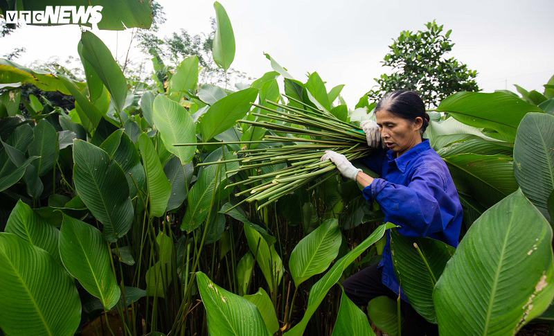 Những ngày cuối tháng Chạp, người dân thôn Tràng Cát, xã Kim An (huyện Thanh Oai, Hà Nội) lại tất bật bắt đầu thu hoạch lá dong phục vụ Tết. Thâm chí, để cung ứng kịp cho thị trường, người dân thường phải cắt lá dong trước Tết Nguyên đán khoảng nửa tháng...