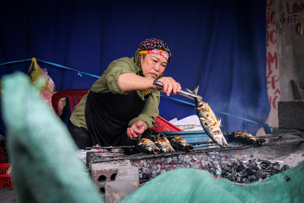 Bật mí về nghề nướng cá, bà Vương Thị Loan (SN 1963, ở xã Hộ Độ) chia sẻ: “Để có được những mẻ cá ngon, chúng tôi phải dậy từ 3-4 giờ để xuống chợ hải sản chọn mua cá, sau đó bỏ vào tủ đông khi nào nướng thì mang ra chế biến, cá sau khi nướng có thể ăn được luôn”.