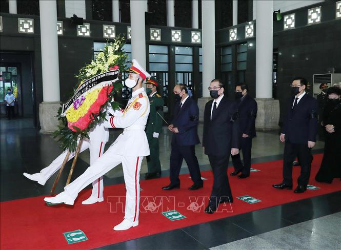 Đoàn các lãnh đạo Đảng, Nhà nước do Chủ tịch nước Nguyễn Xuân Phúc dẫn đầu viếng Đại tướng Phùng Quang Thanh.