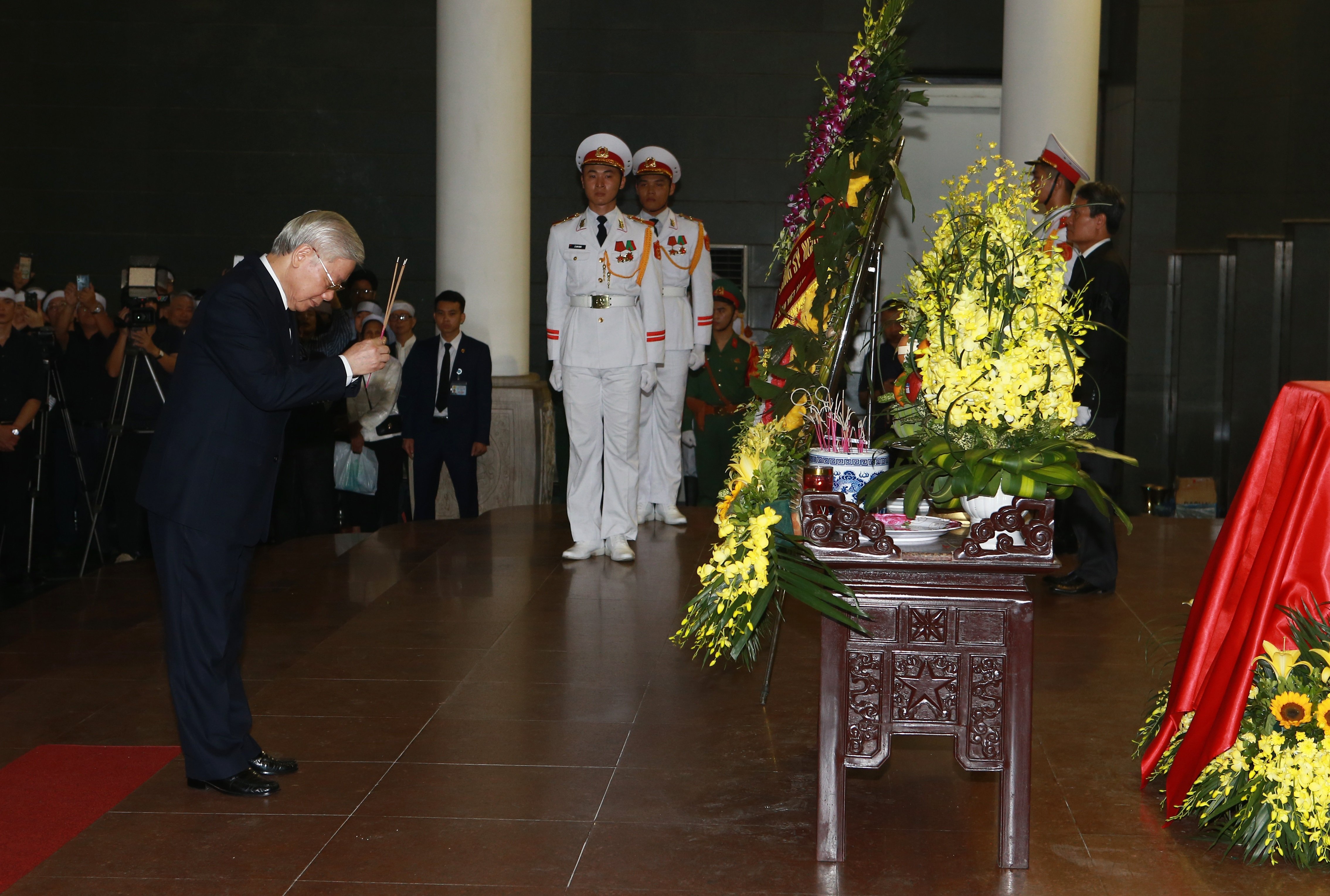 Nguyên Thủ tướng Nguyễn Tấn Dũng cùng các lãnh đạo Chính phủ vào viếng.