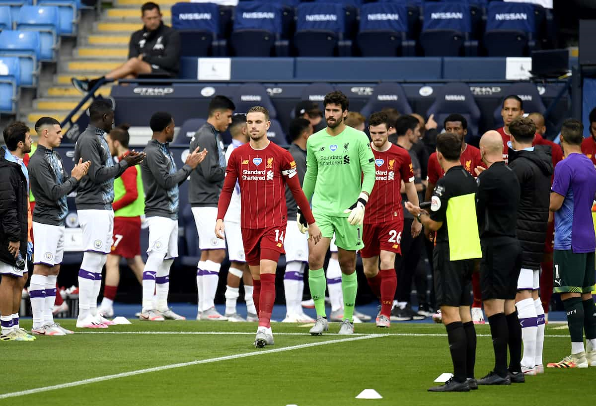 Với chức vô địch Ngoại hạng Anh sau 30 năm chờ đợi, Liverpool đã được Manchester City xếp hàng danh dự chào đón trên sân Etihad. Tân vương giải đấu được cựu vương tôn vinh trước trận, nhưng trong trận đấu, Liverpool lại để đối thủ lấn lướt hoàn toàn.