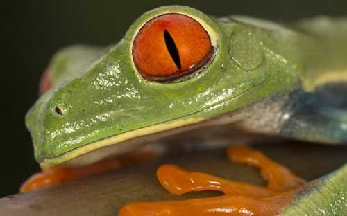 Tứ chi của ếch cây mắt đỏ có màu cam hoặc vàng và có đôi mắt ba mí