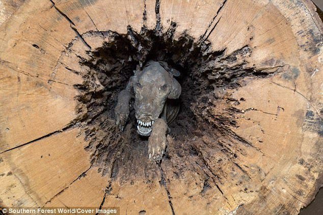 Các chuyên gia tin rằng con chó này có thể đang nóng lòng đuổi theo một con vật khác, chui vào khúc cây rỗng và trèo lên khoảng 8 m trước khi bị mắc kẹt và chết đói.